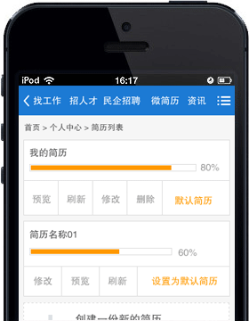 及時(shí)刷新簡歷信息,使求職更加高效,使您不再錯(cuò)過任何一個(gè)機(jī)會。